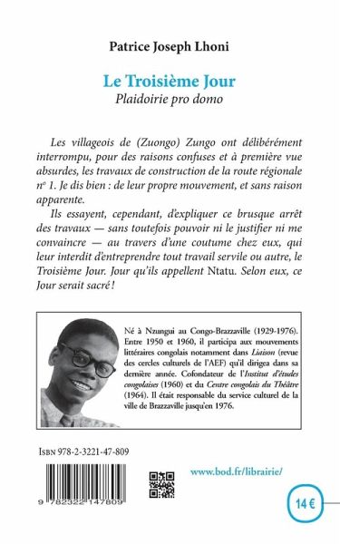 Ils essayent, cependant, d'expliquer ce brusque arrêt des travaux - sans toutefois pouvoir ni le justifier ni me convaincre - au travers d'une coutume chez eux, qui leur interdit d'entreprendre,dre tout travail servile ou autre, le Troisième Jour. Jour qu'ils appellent Ntatu. Selon eux, ce Jour serait sacré !
