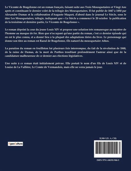 Le Vicomte de Bragelonne - Tome I, uvre magistrale d'Alexandre Dumas, nous transporte dans la France du XVIIe siècle, une époque marquée par les intrigues de cour et les changements politiques. Le récit s'ouvre sur le retour de Charles II en Angleterre, un événement qui résonne jusqu'à la cour de Louis XIV. Dans ce contexte tumultueux, nous suivons les aventures de Raoul de Bragelonne, fils du célèbre mousquetaire Athos, et de ses compagnons d'armes, dont le légendaire d'Artagnan. L'intrigue se déploie dans un cadre où l'honneur et la loyauté sont mis à l'épreuve par les jeux de pouvoir et les passions humaines. Les personnages évoluent dans un monde où les alliances se font et se défont au gré des intérêts personnels et des alternances royales. Ce roman historique explore les thèmes de l'amour, de l'amitié et de la trahison, tout en offrant une réflexion sur la nature du pouvoir et ses conséquences. À travers les péripéties de Raoul, Dumas nous invite à découvrir les coulisses de la cour de France, où chaque geste et chaque parole peuvent avoir des répercussions dramatiques. Les intrigues amoureuses se mêlent aux complots politiques, créant un récit plein de suspense et d'émotions. En développant des personnages complexes et en tissant une intrigue captivante, Le Vicomte de Bragelonne - Tome I nous offre un voyage fascinant dans l'histoire de France. Par la richesse de ses descriptions et la profondeur de ses personnages, ce livre nous apprend à mieux comprendre les enjeux de l'époque et les motivations des hommes et des femmes qui ont façonné l'histoire.