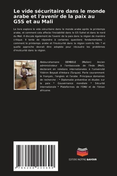 Le livre explore le vide sécuritaire dans le monde arabe après le printemps arabe, et comment cela affecte l'instabilité dans le G5 Sahel et dans le nord du Mali. Il discute également de l'avenir de la paix dans la région de manière critique. Il tente de répondre à certaines questions fondamentales : comment le printemps arabe et l'insécurité dans la région sont-ils liés ? et quelle approche devrait être adoptée pour résoudre les problèmes d'insécurité dans la région.
