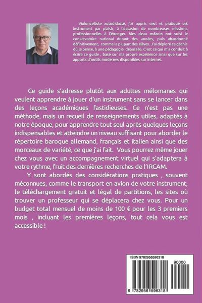Ce guide s'adresse plutôt aux adultes mélomanes qui veulent apprendre à jouer d'un instrument sans se lancer dans des leçons académiques fastidieuses. Ce n'est pas une méthode, mais un recueil de renseignements utiles, adaptés à notre époque, pour apprendre tout seul après quelques leçons indispensables, et atteindre un niveau suffisant pour aborder le répertoire baroque allemand, français et italien ainsi que des morceaux de variété, ce que j'ai fait. Vous pourrez même jouer chez vous avec un accompagnement virtuel qui s'adaptera à votre rythme, fruit des dernières recherches de l'IRCAM. Y sont abordés des considérations pratiques, souvent méconnues, comme le transport en avion de votre instrument, le téléchargement gratuit et légal de partitions, les sites où trouver un professeur qui se déplacera chez vous. Pour un budget total mensuel de moins de 100 pour les 3 premiers mois, incluant les premières leçons, tout cela vous est accessible !