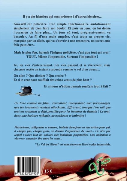 Il y a des histoires qui sont prétexte à d'autres histoires...Amzaëll est policière. Une simple fonctionnaire ambitionnant simplement de bien faire son boulot. Et puis un jour, on lui donne l'occasion de faire plus... Un jour où tout, progressivement, va basculer. Au fil d'une seule enquête, c'est toute sa propre vie, marquée par un décès, qui va s'ouvrir à une rencontre, un secret, une folie peut-être...Mais le plus fou, hormis l'énigme policière, c'est que tout est vrai ! TOUT. Même l'impossible. Surtout l'impossible !Ici, les vies s'entrecroisent. Les vies passent et se cherchent, mais chacune recèle un instant suspendu comme le vol d'un oiseau...Où aller ? Que décider ? Que croire ? Et si le vent nous soufflait des échos venus de plus haut ?Et si nous n'étions jamais seul(e)s tout à fait ?