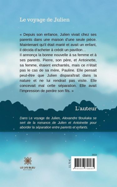 « Depuis son enfance, Julien vivait chez ses parents dans une maison d¿une seule pièce. Maintenant qüil était marié et avait un enfant, il décida d¿acheter à crédit un pavillon¿ Il annonça la bonne nouvelle à sa femme et à ses parents. Pierre, son père, et Antoinette, sa femme, étaient enchantés, mais ce n¿était pas le cas de sa mère, Pauline. Elle pensait peut-être que Julien disparaîtrait dans la nature et ne lui rendrait pas visite. Elle concevait mal cette séparation. Elle avait l¿impression de perdre son fils. »