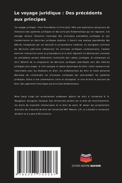 "Le voyage juridique : From Precedents to Principles" offre une exploration perspicace de l'évolution des systèmes juridiques et des principes fondamentaux qui les régissent. Cet ouvrage retrace l'évolution historique des principaux précédents juridiques et leur transformation en doctrines juridiques établies. Il fournit une analyse approfondie des affaires marquantes qui ont façonné la jurisprudence moderne, en soulignant comment les décisions judiciaires influencent les principes juridiques contemporains. L'auteur examine l'interaction entre la jurisprudence et le droit législatif, en démontrant comment les précédents servent d'éléments constitutifs des cadres juridiques. En présentant un récit détaillé de la progression de décisions juridiques spécifiques vers des théories juridiques plus larges, le livre souligne la nature dynamique du droit. Cette ressource est inestimable pour les étudiants en droit, les professionnels du droit et toute personne désireuse de comprendre les processus complexes qui sous-tendent les systèmes juridiques. Grâce à une présentation claire et attrayante, le livre éclaire le parcours du droit, des jugements historiques aux principes fondamentaux.