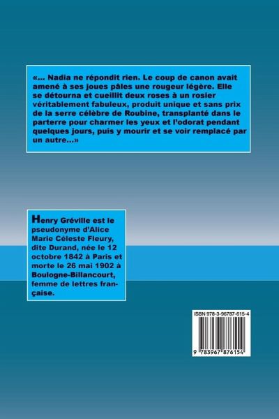 ... Nadia ne répondit rien. Le coup de canon avait amené à ses joues pâles une rougeur légère. Elle se détourna et cueillit deux roses à un rosier véritablement fabuleux, produit unique et sans prix de la serre célèbre de Roubine, transplanté dans le parterre pour charmer les yeux et l'odorat pendant quelques jours, puis y mourir et se voir remplacé par un autre...