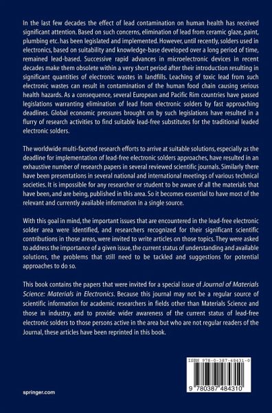 This material originally appeared in a special issue of Journal of Materials Science: Materials in Electronics. Because this journal may not be a regular source of scientific information foracademic researchers in fields other than Materials Science and those in industry, and to provide wider awareness of the current status of lead-free electronic solders to those persons active in the area but who are not regular readers of the Journal, these articles are being reprinted in book form.