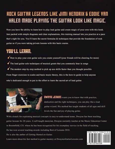 Rock guitar legends like Jimi Hendrix & Eddie Van Halen made playing the guitar look like magic. Now you can learn how to play lead guitar and create magic of your own with this book. Jam-packed with simple diagrams and clear explanations, this training manual lets you practice at a pace that's right for you. You'll learn the secret formulas & techniques that provide the foundation of rock guitar as if you were taking private lessons with this basic course. You'll learn,How to play your guitar solo you create yourself Lead guitar solos secrets of the masters With the step-by-step method, you'll learn fast! Finger exercises, music theory From finger exercises to scales and basic music theory, this is the how-to guide to help anyone who's dedicated enough to put in the effort to learn the sacred art of playing lead guitar.
