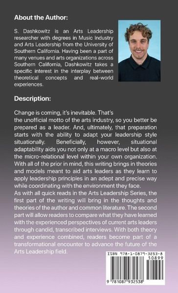 Change is coming, it's inevitable. That's the unofficial motto of the arts industry, so you better be prepared as a leader. And, ultimately, that preparation starts with the ability to adapt your leadership style situationally. Beneficially, however, situational adaptability aids you not only at a macro level but also at the micro-relational level within your own organization. With all of the prior in mind, this writing brings in theories and models meant to aid arts leaders as they learn to apply leadership principles in an adept and precise way while coordinating with the environment they face. As with all quick reads in the Arts Leadership Series, the first part of the writing will bring in the thoughts and theories of the author and common literature. The second part will allow readers to compare what they have learned with the experienced perspectives of current arts leaders through candid, transcribed interviews. With both theory and experience combined, readers become part of a transformational encounter to advance the future of the Arts Leadership field.