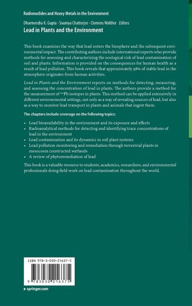 Lead in Plants and the Environment reports on methods for detecting, measuring, and assessing the concentration of lead in plants. The authors provide a method for the measurement of 210Pb isotopes in plants. This method can be applied extensively in different environmental settings, not only as a way of revealing sources of lead, but also as a way to monitor lead transport in plants and animals that ingest them.