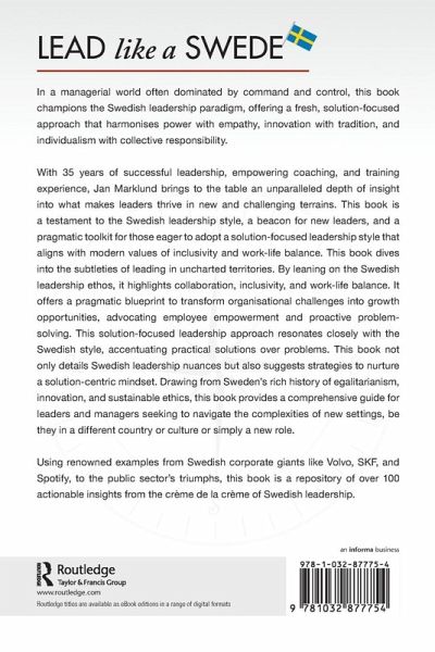 With 35 years of successful leadership, empowering coaching, and training experience, Jan Marklund brings to the table an unparalleled depth of insight into what makes leaders thrive in new and challenging terrains. This book is a testament to the Swedish leadership style, a beacon for new leaders, and a pragmatic toolkit for those eager to adopt a solution-focused leadership style that aligns with modern values of inclusivity and work-life balance. This book dives into the subtleties of leading in uncharted territories. By leaning on the Swedish leadership ethos, it highlights collaboration, inclusivity, and work-life balance. It offers a pragmatic blueprint to transform organisational challenges into growth opportunities, advocating employee empowerment and proactive problem-solving. This solution-focused leadership approach resonates closely with the Swedish style, accentuating practical solutions over problems. This book not only details Swedish leadership nuances but also suggests strategies to nurture a solution-centric mindset. Drawing from Sweden's rich history of egalitarianism, innovation, and sustainable ethics, this book provides a comprehensive guide for leaders and managers seeking to navigate the complexities of new settings, be they in a different country or culture or simply a new role.