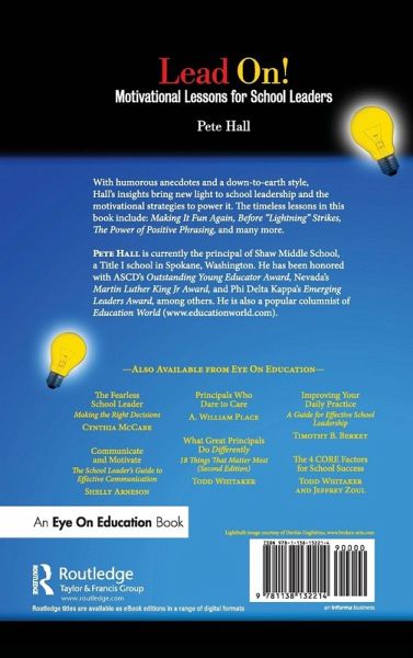 Every school leader will benefit from this must-have book by award-winning educator Pete Hall. In it he shares his wisdom, insights, and lessons lived and learned with educators at all stages of their careers. His lively, readable style makes it easy to follow his practical tips and strategies for taking action, goal-setting, motivating others, gaining perspective, and so much more! The ideas for motivational strategies jump out from the pages, and combined with the common-sense approach, make this a go-to, appealing reference for educators to use over and over again. Timeless lessons in this book include: Making It Fun Again Hope Ain't a Strategy The Power of Positive Phrasing And many more!