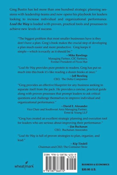 Successful companies win consistently because their employees are united around a common purpose, and each person is focused on doing their part to execute the plan. Most smaller businesses neglect the crucial step of developing a written plan that provides focus and alignment. As a result, execution is inconsistent and performance suffers. What if you had a fast, simple process to develop a plan your team really believed in? And what if you had the tools to drive individual accountability and increase bottom-line results? Lead the Way delivers. Business consultant Greg Bustin shows you step-by-step how to: . Address issues that strangle effectiveness . Agree on key priorities that drive performance . Develop a simple plan with built-in accountability . Achieve buy-in from every employee in your organization . Measure performance and achieve the results you expect Whether you're a new manager or a seasoned leader, Lead the Way provides proven tools and practical steps to help you and your team achieve and sustain higher levels of effectiveness and success.