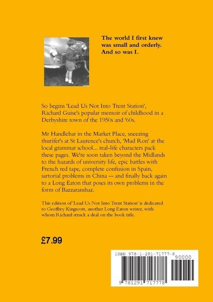 'Lead Us Not Into Trent Station' is Richard Guise's popular memoir of childhood in a Derbyshire town of the 1950s and '60s. Mr Handlebar in the Market Place, sneezing thurifer's at St Laurence's church, 'Mad Ron' at the local grammar school... real-life characters pack these pages. We're soon taken beyond the Midlands to the hazards of university life, epic battles with French red tape, complete confusion in Spain, sartorial problems in China -- and finally back again to a Long Eaton that poses its own problems in the form of Bazzaranshaz.