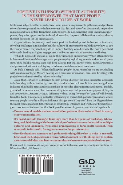 Positive influence (without authority) is the superpower that most people never learn to use at work. Millions of subject-matter experts, functional leaders, requirements gatherers, and problem solvers have opportunities to influence every day. Instead, too often they merely respond to requests and take orders from their stakeholders. By not exercising their unknown superpower, they miss opportunities to break down silos, improve collaboration, and accelerate the best decisions for the organization. Organizations desperately need more positive leadership and influence to innovate, solve big challenges and develop healthy culture. If more people could discover how to use their superpower, they’d not only drive impact, but they would elevate their own perceived self-worth, leading to higher engagement and better mental and emotional wellbeing. What do people do instead of using their untapped superpower? When attempting to influence without much leverage, most people employ logical arguments and repeated pressure. They build a rational case and keep asking. But that rarely works. Facts, arguments and pressure don’t work well trying to influence social/emotional creatures. As Dale Carnegie said, “When dealing with people, let us remember we are not dealing with creatures of logic. We are dealing with creatures of emotion, creatures bristling with prejudices and motivated by pride and vanity.” This book is designed to help people discover the most impactful approach to influencing without authority, coercion, manipulation or force. It is a practical guide to influence that builds trust and relationships. It provides clear patterns and mental models, grounded in neuroscience, for communicating in a way that generates engagement, buy-in and cooperation. Anyone trying to influence without using “leverage” or “control” will benefit from this book. It’s especially suited for influencing in today’s fast-paced organizations where so many people have the ability to influence change, even if they don’t have the biggest title or the most political capital. Other books on leadership, influence and trust, offer broad strategies, theories and truisms, but this book provides something more practical and applicable: * Proven mental models and communication patterns that can be utilized in nearly every communication. * It’s based on Dale Carnegie Training’s over 10-years of workshop, laboratory, and field testing with thousands of professionals across the world in multiple cultures and languages, from small organizations to large multi-national, from non-profit to for-profit, from government to the private sector. * It provides hands on structure and guidance for things like what to write in an email, how to ask the best question in a conversation to unlock new thinking, how to explain a controversial idea, and how to communicate when someone pushes back on you. If you want to learn to utilize your superpower of influence, you have to figure out how to. It's not self-help, it’s how-to.