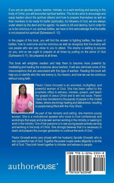 If you are an apostle, pastor, teacher, minister, or a saint working and serving in the body of Christ, you will encounter spiritual warfare. This books aims to encourage and equip leaders about the spiritual attacks and how to prepare themselves as well as their members to be ready for battle (spiritually). As followers of God, we are always under attack by the devil and his agents. He seeks to kill and destroy, but in order for us to be victorious in our spiritual battles, we have to first acknowledge that the battle is not physical but spiritual (Ephesians 6: 12). In the pages of this book, you will find the answer to fighting battles, the types of battles, how to overcome and be victorious as well as recognize that the enemy will use people who are very close to you to attack. The enemy is waiting to pounce on you, and so we ought to prepare at all times by putting on the armor of God (Ephesians 6:11). Be prepared at all times. This book will enlighten readers and help them to become more powerful by meditating and reading the scriptures about warfare. It will also eliminate some of the misconceptions that are associated with this type of warfare. Reading this book will help you to identify who the real enemy is, his mission, and how we can be victorious without losing faith.