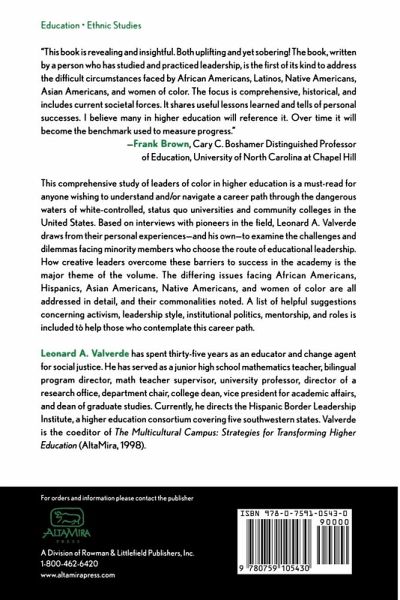 Part 1 Foreword Part 2 Acknowledgments Part 3 Introduction Part 4 Section I: Change, Difficulty, and Leadership Chapter 5 Chapter 1: Overcoming Much Adversity Chapter 6 Chapter 2: What Progress? Chapter 7 Chapter 3: Leadership: Metamorphosing Higher Education and Creating a Democratic Society Part 8 Section II: The Challenges and Dilemmas in Leading Chapter 9 Chapter 4: Pioneers As Educational Giants Chapter 10 Chapter 5: African American Leaders: Carving Out a Path from Hard Rock Chapter 11 Chapter 6: Latino Leaders: Conflicting Expectations, ¿Sì or No? Chapter 12 Chapter 7: Women of Color: Double the Problems, Twice Enriched Chapter 13 Chapter 8: Asian American Paradox: The "Model Minority" Still Begets Exclusion Chapter 14 Chapter 9: American Indians: Noble But Still Forgotten Part 15 Section III: Professional Growth and Keeping the Faith Chapter 16 Chapter 10: Lessons Learned and Consequences of Action Chapter 17 Chapter 11: The Rainbow Will Appear Part 18 References Part 19 About the Author Part 20 Index