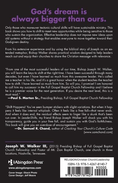 Foreword by Dave Ramsey. Dealing with cultural and congregational shifts are life and death. Our world isn't slowing down, so only those who are willing to maneuver the tectonic cultural shifts will have sustainable ministry. From his extensive experience and using the biblical story of Joseph as an extended metaphor, Bishop Joseph Walker shares practical wisdom designed to help leaders reach out and equip their church to share a relevant Christian message. Shifting approaches to follow where God leads can also mean that leaders have to risk confronting cherished tradition, which Bishop Paul Morton calls "frozen success." But shifting to meet new opportunities is also a delicate balance that acknowledges history while also being sensitive to those loyal people who have sustained the organization to this point. Effective leadership does not impose new ideas upon old systems without a strategy that enables everyone in the organization moving forward together. It's not simply, "out with the old and in with the new." Successful organizations do not forget their history, but they commit themselves to using it as a bridge to propel them to their destiny.