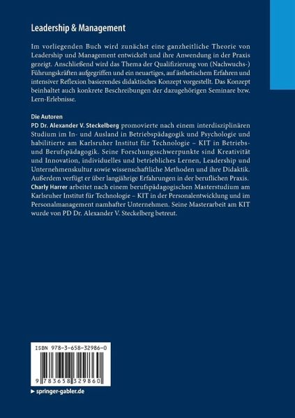 Im vorliegenden Buch wird zunächst eine ganzheitliche Theorie von Leadership und Management entwickelt und ihre Anwendung in der Praxis gezeigt. Anschließend wird das Thema der Qualifizierung von (Nachwuchs-)Führungskräften aufgegriffen und ein neuartiges, auf ästhetischem Erfahren und intensiver Reflexion basierendes didaktisches Konzept vorgestellt. Das Konzept beinhaltet auch konkrete Beschreibungen der dazugehörigen Seminare bzw. Lern-Erlebnisse.