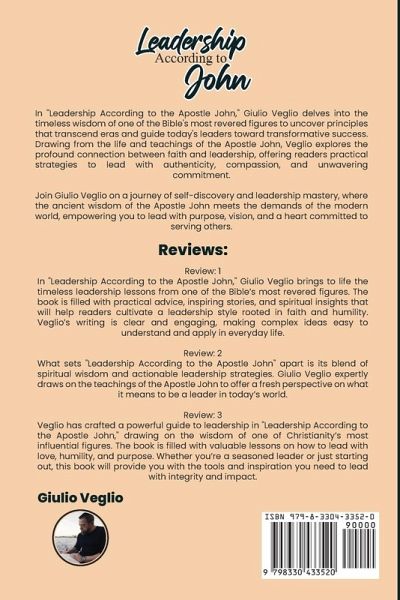 In "Leadership According to the Apostle John, Giulio Veglio delves into the timeless wisdom of one of the Bible's most revered figures to uncover principles that transcend eras and guide today's leaders toward transformative success. Drawing from the life and teachings of the Apostle John, Veglio explores the profound connection between faith and leadership, offering readers practical strategies to lead with authenticity, compassion, and unwavering commitment. Join Giulio Veglio on a journey of self-discovery and leadership mastery, where the ancient wisdom of the Apostle John meets the demands of the modern world, empowering you to lead with purpose, vision, and a heart committed to serving others.