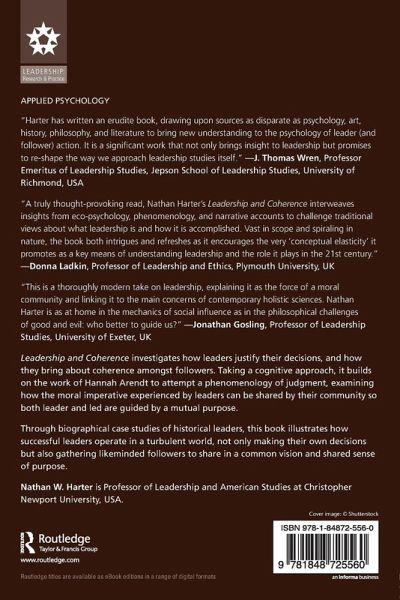Leadership and Coherence investigates how leaders justify their decisions, and how they bring about coherence amongst followers. Taking a cognitive approach, it builds on the work of Hannah Arendt to attempt a phenomenology of judgment, examining how the moral imperative experienced by leaders can be shared by their community so both leader and led are guided by a mutual purpose. Through biographical case studies of historical leaders, this book illustrates how successful leaders operate in a turbulent world, not only making their own decisions but also gathering likeminded followers to share in a common vision and shared sense of purpose.