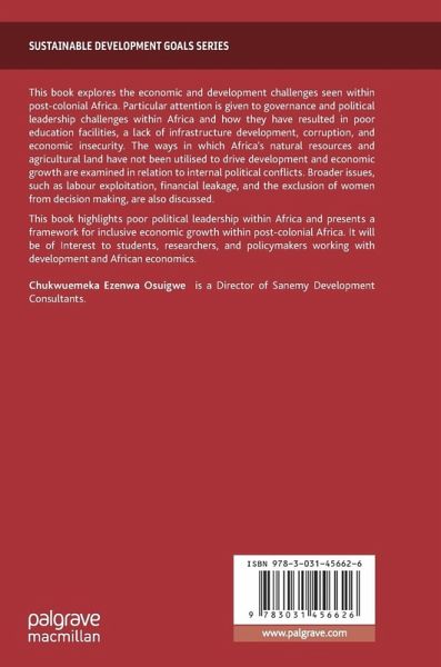 This book explores the economic and development challenges seen within post-colonial Africa. Particular attention is given to governance and political leadership challenges within Africa and how they have resulted in poor education facilities, a lack of infrastructure development, corruption, and economic insecurity. The ways in which Africa's natural resources and agricultural land have not been utilised to drive development and economic growth are examined in relation to internal political conflicts. Broader issues, such as labour exploitation, financial leakage, and the exclusion of women from decision making, are also discussed.
