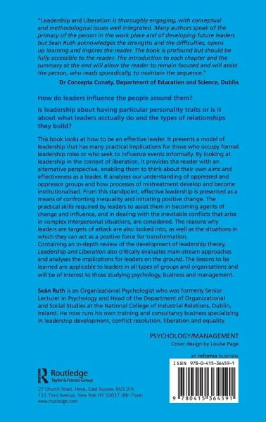 How do leaders influence the people around them? Is leadership about having particular personality traits? This book looks at how to be an effective leader. It presents a model of leadership that has many practical implications for those who occupy formal leadership roles or who seek to influence events informally. By looking at leadership in the context of liberation, it provides the reader with an alternative perspective, enabling them to think about their own aims and effectiveness as a leader. As well as providing a workable model of how leadership operates, it also looks at the practical skills required by leaders to assist them in becoming agents of change and influence, and in dealing with the inevitable conflicts that arise in complex interpersonal situations. It explores why leaders get attacked, but also how they can be a positive force for transformation and liberation. Containing an in-depth review of the development of leadership theory, "Leadership and Liberation" also critically evaluates main-stream approaches and analyses the implications for leaders on the ground. The lessons to be learned are applicable to leaders in all types of groups and organizations and will be of interest to those studying psychology, business and management.