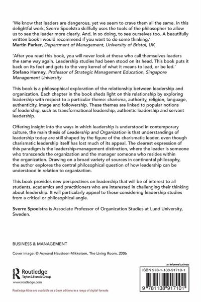 Offering insight into the ways in which leadership is understood in contemporary culture, the main thesis of Leadership and Organization is that understandings of leadership today are still shaped by the figure of the charismatic leader, even though charismatic leadership itself has lost much of its appeal. The clearest expression of this paradigm is the leadership-management distinction, where the leader is someone who transcends the organization and the manager someone who resides within the organization. Drawing on a broad variety of sources in continental philosophy, the author explores the central philosophical question of how leadership can be understood in relation to organization
