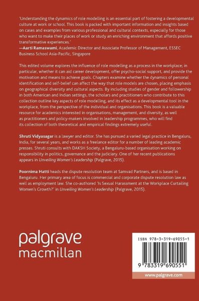 Section I. Dynamics of Workplace Role Modelling.- Chapter 1. A Followership Perspective on Role Modelling and Mentorship; Cassandra A. Ray and Michelle T. Violanti.- Chapter 2. Role Modelling and Its Impact on the Self-development of Academics; Julie Nyanjom.- Chapter 3. Role Modelling as an Alternative to Mentoring for Career Development Outcomes in Organisations; Tanjia M. Coleman.- Section II. Gender and Role Modelling.- Chapter 4. Close and Distant Female Role Models in the Workplace; Alexandra Lyman and Stacie F. Chappell.- Chapter 5. Complexities in the Role Model Identification Process for Educated Women from Rural India; Annu Mathew.- Section III. Practitioners' Perspectives.- Chapter 6. Role Modelling as a Means of Transformative Growth; Kshitij Sharma.- Chapter 7. Fostering Vision, Culture, and Accountability in Young Organisations through Role Modelling; Timothy Franklyn.- Chapter 8. Being and Following Role Models; Raju Ramachandran, T. S. Sridhar and Sudarshan Iyengar.