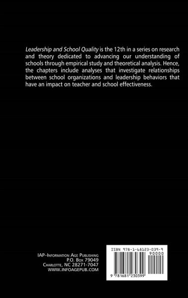 A volume in Research and Theory in Educational Administration Series Editors: Michael DiPaola, The College of William and Mary and Wayne K. Hoy, The Ohio State University Leadership and School Quality is the twelfth in a series on research and theory dedicated to advancing our understanding of schools through empirical study and theoretical analysis. Hence, the chapters include analyses that investigate relationships between school organizations and leadership behaviors that have an impact on teacher and school effectiveness.
