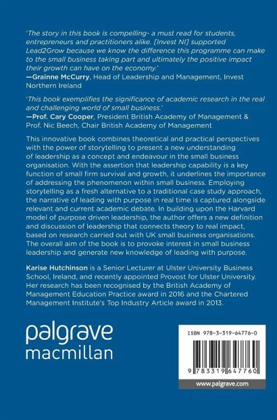 This innovative book combines theoretical and practical perspectives with the power of storytelling to present a new understanding of leadership as a concept and endeavour in the small business organisation. With the assertion that leadership capability is a key function of small firm survival and growth, it underlines the importance of addressing the phenomenon within small business. Employing storytelling as a fresh alternative to a traditional case study approach, the narrative of leading with purpose in real time is captured alongside relevant and current academic debate. In building upon the Harvard model of purpose driven leadership, the author offers a new definition and discussion of leadership that connects theory to real impact, based on research carried out with UK small business organisations. The overall aim of the book is to provoke interest in small business leadership and generate new knowledge of leading with purpose.
