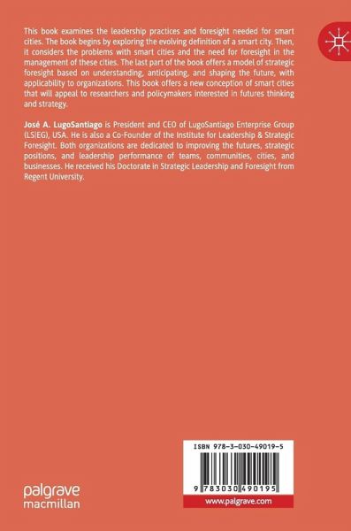 This book examines the leadership practices and foresight needed for smart cities. The book begins by exploring the evolving definition of a smart city. Then, it considers the problems with smart cities and the need for foresight in the management of these cities. The last part of the book offers a model of strategic foresight based on understanding, anticipating, and shaping the future, with applicability to organizations. This book offers a new conception of smart cities that will appeal to researchers and policymakers interested in futures thinking and strategy.