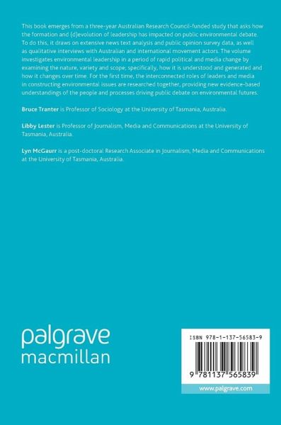 This book emerges from a three-year Australian Research Council-funded study that asks how the formation and (d)evolution of leadership has impacted on public environmental debate. To do this, it draws on extensive news text analysis and public opinion survey data, as well as qualitative interviews with Australian and international movement actors. The volume investigates environmental leadership in a period of rapid political and media change by examining the nature, variety and scope; specifically, how it is understood and generated and how it changes over time. For the first time, the interconnected roles of leaders and media in constructing environmental issues are researched together, providing new evidence-based understandings of the people and processes driving public debate on environmental futures.