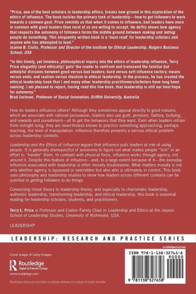 How do leaders influence others? Although they sometimes appeal directly to good reasons, which we associate with rational persuasion, leaders also use guilt, pressure, flattery, bullying, and rewards and punishment-all to get the behaviors that they want. Even when leaders refrain from outright lying, they are nevertheless known to practice something approaching, perhaps reaching, the level of manipulation. Influence therefore presents a serious ethical problem across leadership contexts. Leadership and the Ethics of Influence argues that influence puts leaders at risk of using people. It is generally disrespectful of autonomy to figure out what makes people "tick" in an effort to "handle" them. In contrast with physical force, influence works through agency, not around it. Despite this feature of influence-and, to a large extent because of it-the everyday influence associated with leadership is often morally troublesome. What matters morally is not only whether agency is bypassed or overridden but also who is ultimately in control. This book uses philosophy and leadership studies to show how leaders across different contexts can be justified in getting followers to do things. Connecting moral theory to leadership theory, and especially to charismatic leadership, authentic leadership, transforming leadership, and ethical leadership, this book is essential reading for leadership scholars, students, and practitioners.