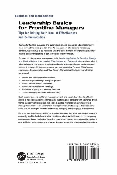 This book is classified and organised into three major headings: personal effectiveness, leadership, and communication. It focuses on interpersonal management skills and explains what it takes to improve how frontline managers and supervisors communicate and relate to their employees and customers.