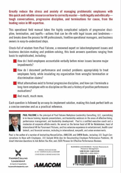 Greatly reduce the stress of managing a team with this quick and reliable information on how to correctlymaster---both legally and ethically---progressive discipline and structuredtermination,from the leading voice in HR expertise.
