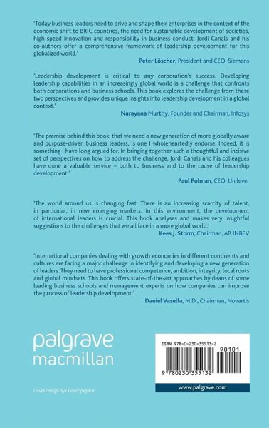 Introduction; J.Canals Global Leadership Development: Reframing the Needs of Global Companies; J.Canals Innovation at Global Leadership Development; N.Nohria Combining Purpose and Performance: A New Look at Global Business Schools; D.Jain & M.Golosinski The ABCD of Leadership Development in World 3.0; P.Ghemawat The Development of General Managers Capabilities in a Global Economy; R.Bruner , R.Conroy & S.Snell What Role Management Development has to Play in Growing International Companies; P.Nueno Accounting for Culture in Global Leadership; C.S.Runde Globalization and Sustainable Leadership; M.Elvira & A.Davila Global Leadership in Multicultural Teams; Y.Lee Management Innovation and Talent Development: The Next Wave Coming from Asia; B.Young Rethinking the Role of Business Schools in Developing Global Talent; T.Snyder