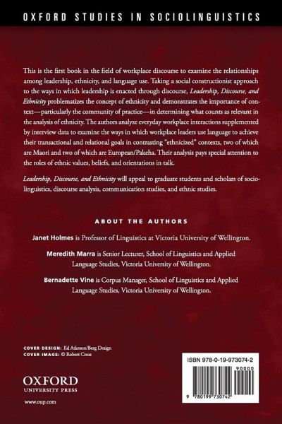 This is the first book in the field of workplace discourse to examine the relationships among leadership, ethnicity, and language use. Taking a social constructionist approach to the ways in which leadership is enacted through discourse, Leadership, Discourse, and Ethnicity problematizes the concept of ethnicity and demonstrates the importance of context-particularly the community of practice-in determining what counts as relevant in the analysis of ethnicity. The authors analyse everyday workplace interactions supplemented by interview data to examine the ways in which workplace leaders use language to achieve their transactional and relational goals in contrasting "ethnicized" contexts, two of which are Maori and two European/Pakeha. Their analysis pays special attention to the roles of ethnic values, beliefs and orientations in talk.