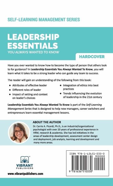 A Practical Guide to Leadership Traits, Power, Ethics, and Leading High-Performance Teams Leadership Essentials You Always Wanted to Know covers the following concepts:Attributes of an effective leader Different roles of a leader Impact of setting and context on a leader's choices Integration of ethics into best practices Trends influencing the evolution of leadership in the 21st century Learn what it takes to be a strong leader who can guide any team to success! Have you ever wanted to know how to become the type of person that others look to for guidance? In Leadership Essentials You Always Wanted to Know, you will learn what it takes to be a strong leader who can guide any team to success. Driven by the latest research on leadership, this straight-forward guide breaks down not only the traits of highly effective leaders, but also how to use those traits in a variety of situations. You do not need to be in a leadership position to benefit from the lessons detailed in this book. Aside from defining the concepts of leadership and motivation, the book explores the best practices of effective leadership and the core competencies of influential leaders. It also offers insight into real-world challenges that have been faced--and overcome--by thriving organizations. With chapter summaries, quizzes, and online resources to reinforce concepts, Leadership Essentials You Always Wanted to Know is a power-packed resource that will guide you towards becoming a better leader. About the Series The Self-Learning Management Series is designed to help students, new managers, career switchers and entrepreneurs learn essential management lessons. This series is designed to address every aspect of business from HR to Finance to Marketing to Operations, across any and every industry. Each book includes basic fundamentals, important concepts, standard and well-known principles, and practical ways of application of the subject matter. The distinctiveness of the series lies in that all the relevant information is bundled in a compact form that is very easy to interpret.