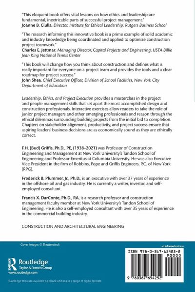From its accessible, conversational tone to the lifetimeâ s worth of construction wisdom it shares, Leadership, Ethics, and Project Execution offers an extended mentoring session with three giants of the building industry.