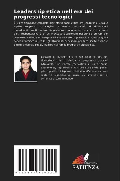 È un'esplorazione completa dell'intersezione critica tra leadership etica e rapido progresso tecnologico. Attraverso una serie di discussioni approfondite, mette in luce l'importanza di una comunicazione trasparente, della responsabilità e di un processo decisionale basato su principi per costruire la fiducia e l'integrità all'interno delle organizzazioni. Questa guida concisa fornisce ai leader gli strumenti necessari per fare scelte etiche e ottenere risultati positivi nell'era del rapido progresso tecnologico.