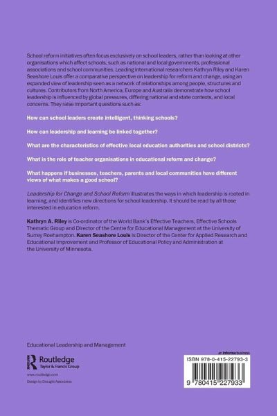School reform is a top priority for governments today. This timely and challenging book, edited by leading international researchers, Kathryn Riley and Karen Seashore Louis, offers a rich comparative perspective on leadership for change and school reform. Contributors form North America, Europe and Australia demonstrate how school leadership is influenced by global pressures, differing national and state contexts and local concerns. They illustrate the limitations of reform initiatives which focus on school leaders tot he exclusion of the many other organisations which affect school, such as national and local governments, professional associations and school communities. This book raises some important questions such as: *How can school leaders create intelligent, thinking schools? *How can leadership and learning be linked together? *What are the characteristics of effective local education authorities and school districts? *What is the role of teacher organisations in educational reform and change? *What happens if businesses, teachers, parents and local communities have different views of what makes a good school? The text illustrates the ways in which leadership is rooted in learning, and identifies new directions for school leadership. It challenges conventional notions of leadership, offering an expanded view, which sees leadership just as an individual role-based function, but as a network of relationships among people, structures and cultures. This lively and provocative book should be read by all those interested in education reform.