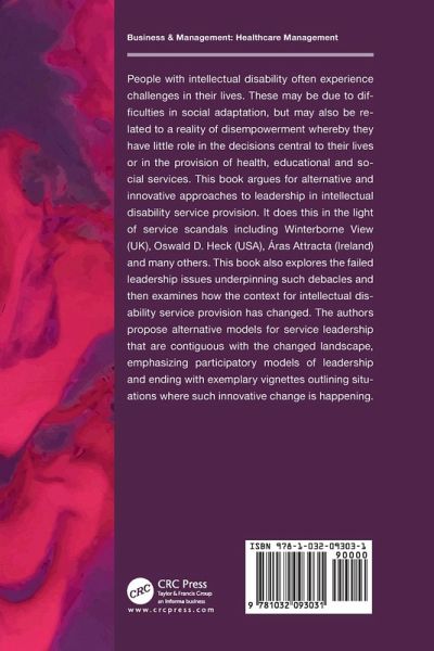 The book will explore the failed leadership issues underpinning such debacles and then examine how the context for intellectual disability service provision has changed. It will then propose alternative models for service leadership that are contiguous with the changed landscape.