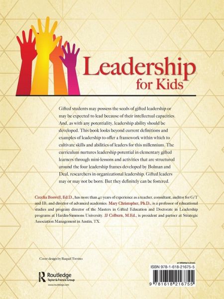 Gifted students may possess the seeds of gifted leadership or may be expected to lead because of their intellectual capacities. And, as with any potentiality, leadership ability should be developed. This book looks beyond current definitions and examples of leadership to offer a framework within which to cultivate skills and abilities of leaders for this millennium. The curriculum nurtures leadership potential in elementary gifted learners through mini-lessons and activities that are structured around the four leadership frames developed by Bolman and Deal, researchers in organizational leadership. Gifted leaders may or may not be born. But they definitely can be fostered.