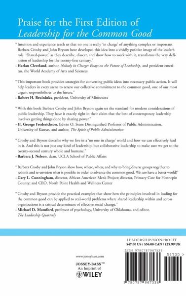 When it was first published in 1992, the first edition of Leadership for the Common Good presented a revolutionary approach to community and organizational leadership in a shared-power world. Now, in this completely revised and updated edition, Barbara Crosby and John Bryson expand on their proven leadership model and offer new insights and guidance to leaders. This second edition is a practical resource for a new generation of leaders and aspiring leaders and includes success stories, challenges, and real-world experience.