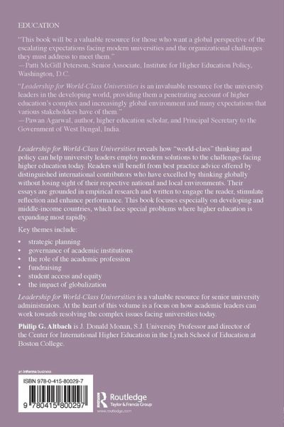 Leadership for World-Class Universities reveals how "world-class" thinking and policy can help university leaders employ modern solutions to the challenges facing higher education today. Readers will benefit from best practice advice offered by distinguished international contributors who have excelled by thinking globally without losing sight of their respective national and local environments. Their essays are grounded in empirical research and written to engage the reader, stimulate reflection and enhance performance. This book focuses especially on developing and middle-income countries, which face special problems where higher education is expanding most rapidly. Key themes include: strategic planning governance of academic institutions the role of the academic profession fundraising student access and equity the impact of globalization Leadership for World-Class Universities is a valuable resource for senior university administrators. At the heart of this volume is a focus on how academic leaders can work towards resolving the complex issues facing universities today.