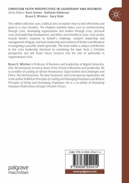 This edited collection uses a biblical lens to explore how to lead effectively and grow in a crisis situation. The chapters examine topics such as communicating through crisis, developing organizations and leaders through crisis, personal crisis and leadership development, and ethics and morality in crisis. Case studies include David's response to Goliath's challenge, Joseph's leadership and management of Egypt, and the team leadership and resilience of Esther and Mordecai in navigating a possible Jewish genocide.This book makes a unique contribution to the crisis leadership literature by examining the topic from a Christian perspective and will foster future research into the role of spirituality in organizational crisis.
