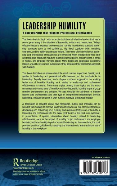 Preface. Acknowledgments. About the Author. Chapter 1 The Meaning and Components of Humility. Chapter 2 The Performance Impact of Humility. Chapter 3 The Impact of Humility on Employee Behavior. Chapter 4 The Attributes of Humble Leaders and Professionals. Chapter 5 Interpersonal Aspects of Humble Leadership. Chapter 6 Practices of Humble Leaders and Professionals. Chapter 7 Servant Leadership and Humility. Chapter 8 Narcissism, Hubris, and Charisma Blended with Humility. Chapter 9 Developing and Enhancing Your Humility. Chapter 10 Making Effective Use of Humility. Index.