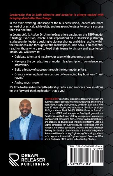 Leadership that is both effective and decisive is always tasked with bringing about effective change. In the ever-evolving landscape of the business world, leaders are more in need of practical, achievable, and measurable steps to secure success than ever before. In Leadership in Action, Dr. Jimmie Gray offers a solution: the SEPP model (Strategy, Execution, People, and Preparation). SEPP leadership strategy is a beacon for leaders seeking to pioneer change and drive results within their business and throughout the marketplace. This book is an essential read for those who dare to lead their teams to victory and excellence. Inside, you will learn to: ¿Cultivate talent and inspire your team with proven strategies.¿Navigate the complexities of modern leadership with confidence and innovation.¿Build a legacy of success through the four model pillars.¿Create a winning business culture by leveraging key business "must haves."¿And so much more! It's time to discard outdated leadership tactics and embrace new solutions for the forward-thinking leader-that's you!