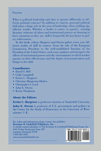 The seven essays in Leadership in Context explore important questions at the heart of understanding political leadership. The relationship between personal political skill, the strength or weakness of institutional roles available to leaders, and the changing historical and political context in which leaders act forms the central discussion of each chapter.