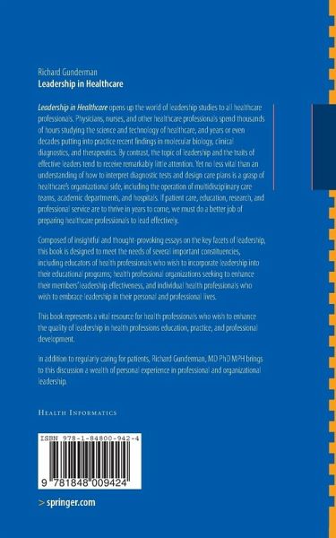 "This is an outstanding book addressing the necessary qualities and demands of leadership in healthcare. Although focussing primarily on the medical profession, the book offers important insight into leadership in general, particularly relevent in these days of economic crisis, as well as useful lessons for life". (David W. Townsend, Knoxville, TN, USA, March 2009)