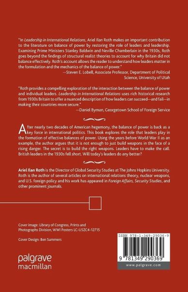 "Roth provides a compelling exploration of the interaction between the balance of power and individual leaders. Leadership in International Relations uses rich historical research from 1930s Britain to offer a nuanced description of how leaders can succeed - and fail - in making their countries more secure." - Daniel Byman, Georgetown School of Foreign Service